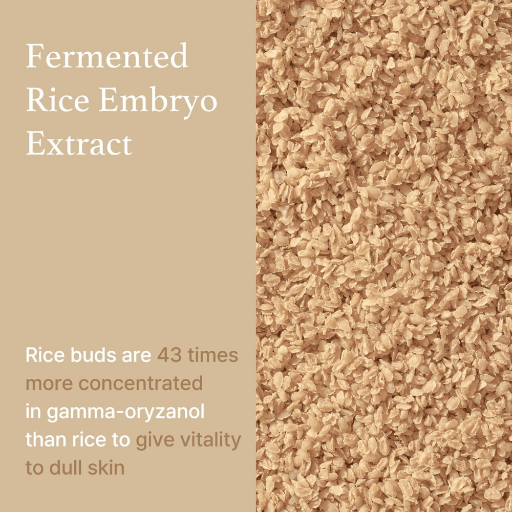 يحتوي السيروم على خلاصة الأرز الغنية بمضادات الأكسدة والفيتامينات التي تساعد على تفتيح البشرة، توحيد لونها، تقليل مظهر البقع الداكنة، وتعزيز مرونة الجلد. كما يساهم في تقوية الحاجز الواقي للبشرة ومنحها نعومة ونضارة تدوم طوال اليوم.