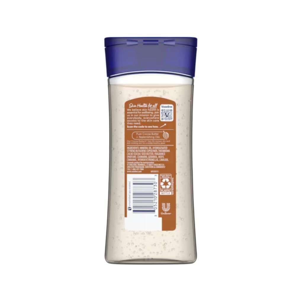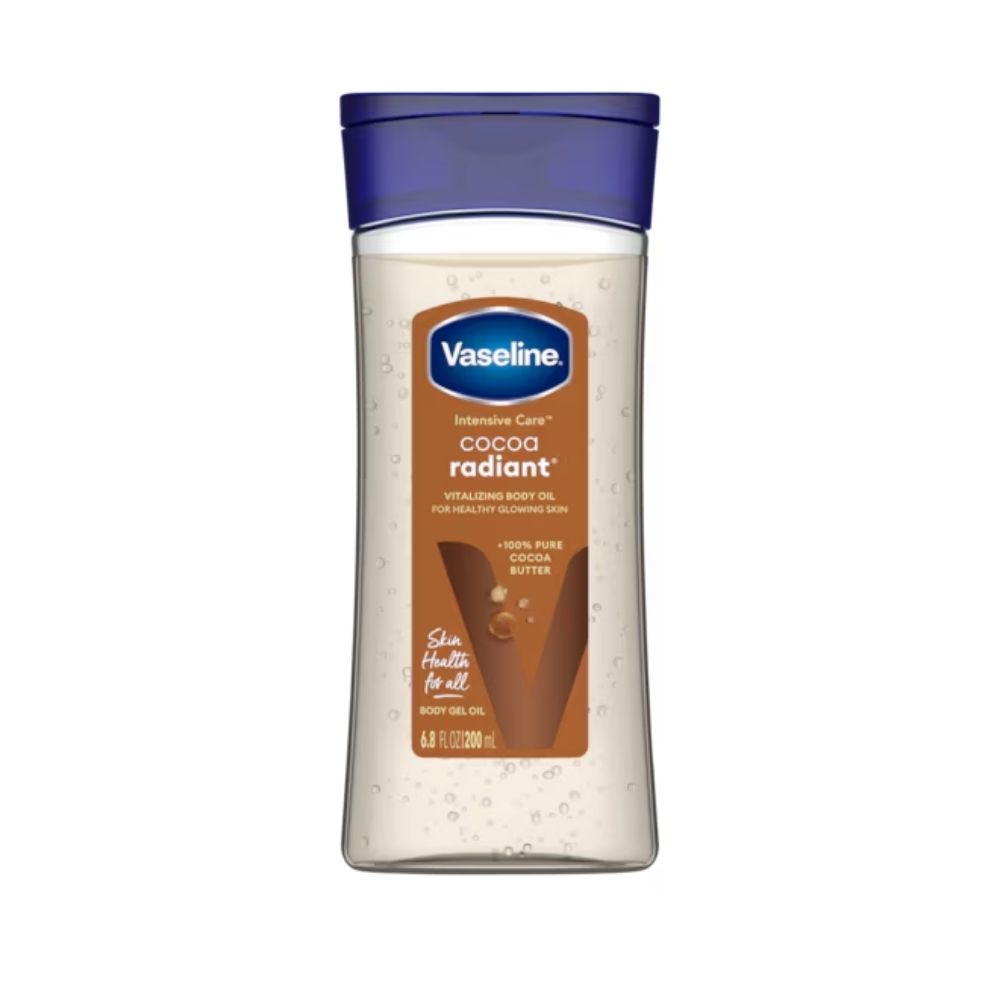 -تركيبة Vaseline® Cocoa Radiant Gel Oil الغنية وغير الدهنية تجمع بين زبدة الكاكاو النقية وزيت مغذٍ يعيد للبشرة ترطيبها الطبيعي، ويمنحها إشراقة صحية ومظهرًا متوهجًا طبيعيًا.